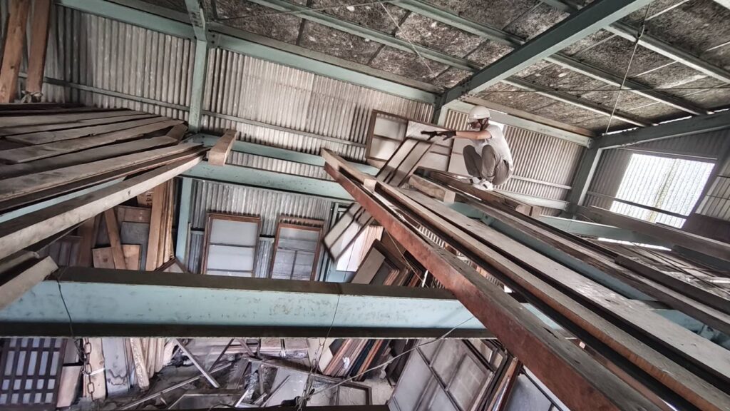というのもこちらの物件、倉庫がございまして地上約4mぐらいの高さに鉄骨が渡してあります。