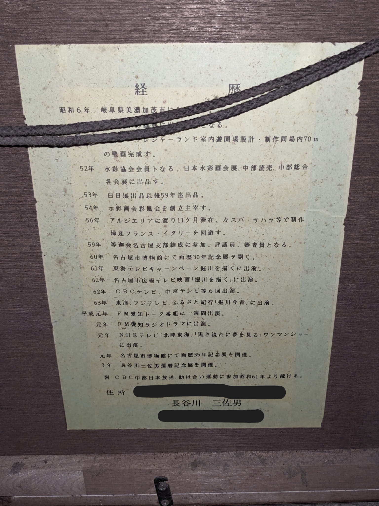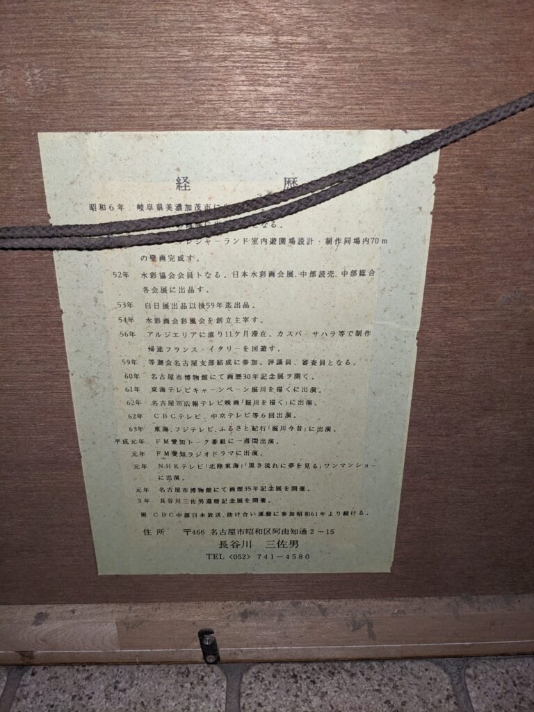 空き家を片付けてましたら作者の情報が記載された絵画が出て参りました。